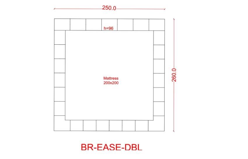 EASE-White Fabric Double BED, poplar wood bed size 250x260 mattress size 200x200